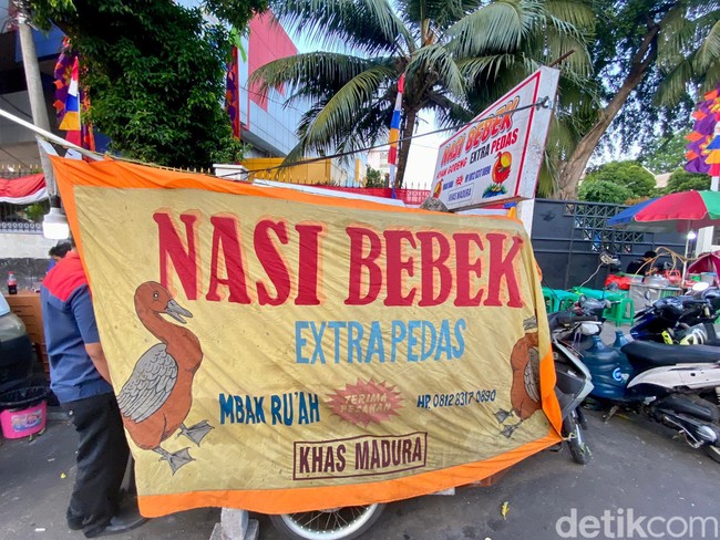 Jakarta - Nasi bebek Madura dengan siraman bumbu hitam jadi incaran. Di depan GOR Bulungan, Blok M, ada penjual nasi bebek Madura autentik yang menunya layak dicoba.