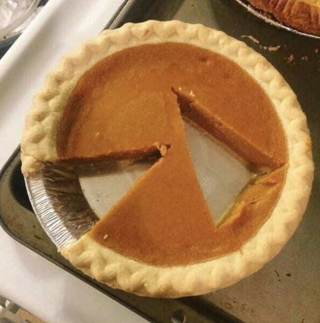 Potong kue pie secara asal-asalan, hasilnya ada lubang besar bekas potongan di bagian tengah kue. Jika seperti ini tentu akan merepotkan orang lain yang akan memotong kue. Foto: Pool/Site