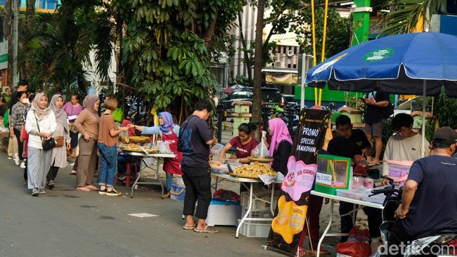 Jakarta - Kawasan Pasar Santa, Kebayoran Baru, Jakarta Selatan, menjadi salah satu tempat favorit berburu takjil untuk buka puasa. Harga takjilnya pun terjangkau.