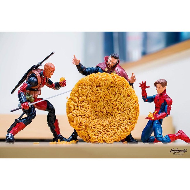 Jakarta - Deretan action figure dari berbagai karakter superhero terkenal, seperti Iron Man, Hulk, Captain America, hingga Spiderman. Disulap dengan pose kulineran seru.