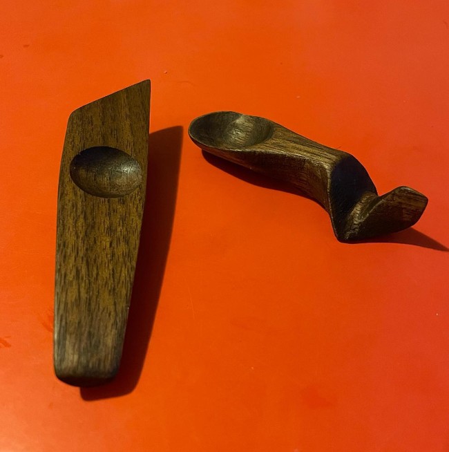Sebuah sendok yang terbuat dari kayu ini dipahat dengan bentuk yang unik. Ada yang jajar genjang hingga lekukan aneh di bagian ujungnya. Foto: Instagram/weirdspoons