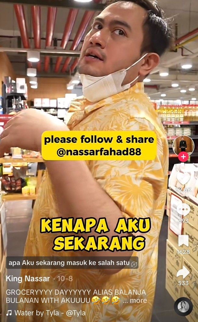Melalui TikTok @nassarfahad88 (8/10), Nassar mengunggah video yang kini sudah ditonton lebih dari 1,3 juta kali. Ia terlihat sedang menyambangi supermarket premium favoritnya di Jakarta, Ranch Market. Foto: TikTok @nassarfahad88