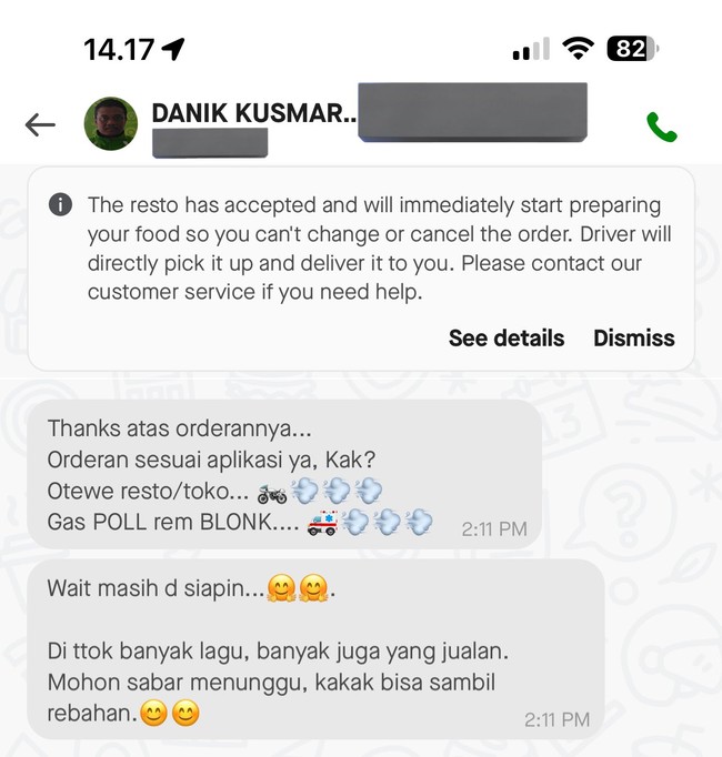 Chat Kocak Ojol dan Pelanggan saat Pesan Makanan Ini Bikin Ngakak