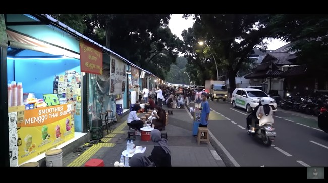Jejeran tempat makan viral di Barito antara lain Nasi Mercon Barito, Ketan Susu Barito, hingga Puding Karamel Paman Barito. Biasanya antrean pembeli sudah terlihat mulai sore hari. Foto: YouTube Crazy Nikmir REAL