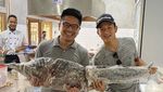 Mampir ke dapur Kejawa Resto di Jogja, Rio terlihat berpose membawa seekor ikan di tangannya. "Tempat makan siang hari ini," tulis Rio. Foto: Instagram rharyantoracing
