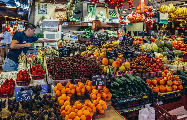 Di Barcelona, Spanyol, ada pasar La Boqueria yang ikonik sejak 1840. Aneka seafood segar, buah dan sayur musiman, hingga makanan tradisional Spanyol tersedia di sini. Foto: MSN