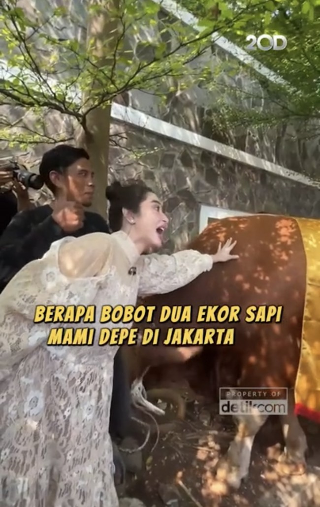 Jakarta - Tahun ini Dewi Persik berkurban 17 ekor sapi. Penyanyi dangdut itu juga turut membantu memotong daging sapi kurban. Begini momennya!