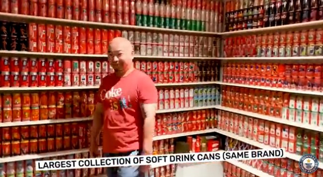 Seorang pria bernama Gary Ang, punya ambisi yang unik. Alih-alih tempat pakain yang besar, di rumahnya ada ruangan khusus koleksi kaleng Coca Cola. Foto: Guinness Book of World Record