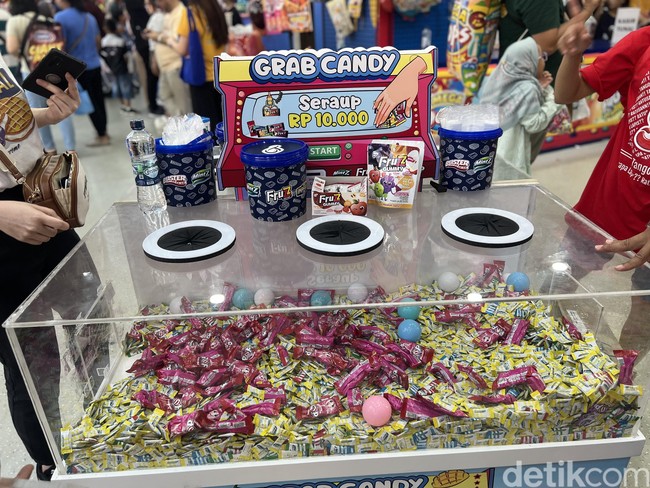 Di Pekan Raya Jakarta (PRJ) 2025 banyak tenant kuliner yang menawarkan promo ambil makanan sepuasnya. Salah satunya gerai permen yang punya promo ambil seraup. Foto: Detikcom / Atiqa Rana