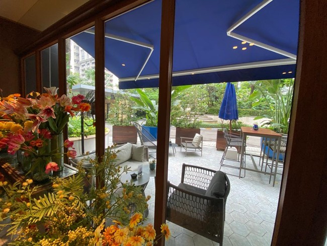 Adalah Blue Terrace, sebuah restoran yang berlokasi di hotel AYANA Midplaza Sudirman Jakarta. Restoran ini punya dekorasi bunga-bunga segar yang cantik. Foto: Daniel Ngantung/detikcom