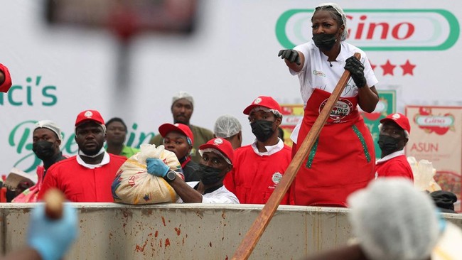 Aksi Koki Nigeria Masak Nasi Jollof Raksasa Demi Rekor Dunia