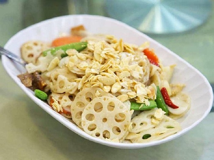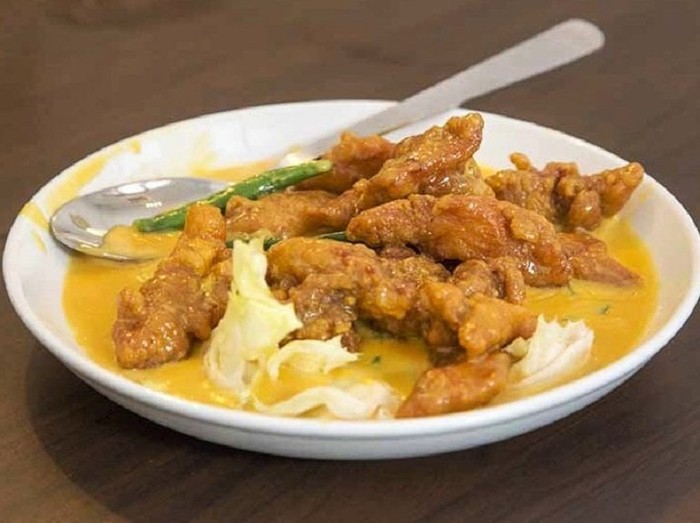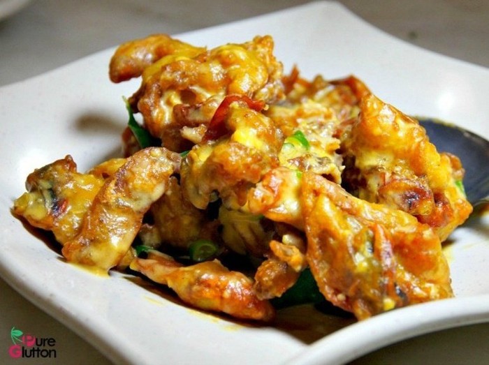 Salah satu sajian yang perlu dicoba adalah softshell crab dengan kuning telur asin. Paduan adonan renyah, kuning telur, kepiting segar, daun kari dan irisan cabai membuat sajian ini tak berbeda dari resto China biasa.