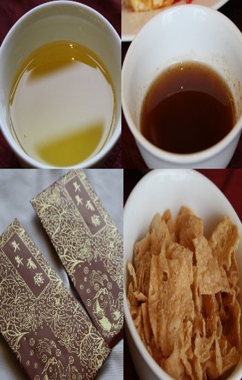Selanjutnya, tambahkan bubuk kacang tanah, sambil berkata âJin Yin Man Wuâ agar rumah dipenuhi dengan emas dan perak. Taburkan wijen sambil berkata âSheng Yi Xing Longâ, untuk keberuntungan dalam usaha. Tambahkan pok chui crackers, diiringi dengan âMan Di Huang Jinâ, yang bermakna lantai penuh dengan emas.