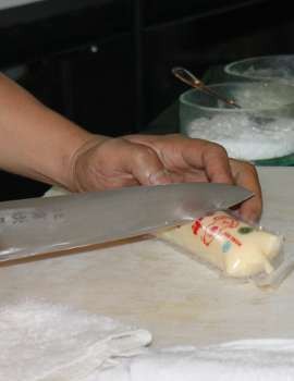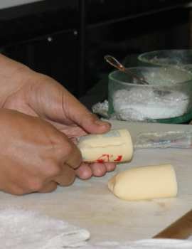 Untuk mengeluarkan tofu dari plastik juga tidak sulit. Cukup mendorong tahu dari ujung plastik secara perlahan hingga semua permukaan tofu keluar.