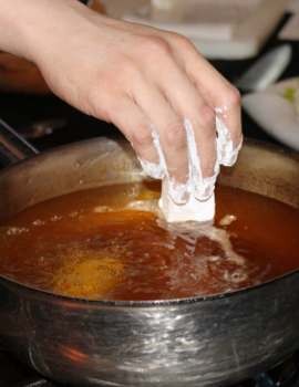 Jika ingin menggoreng potongan tofu ini, lumuri dengan sedikit tepung maizena dan garam hingga rata. Goreng dalam rendaman minyak yang tidak terlalu panas. Biarkan hingga mengapung dan kering lalu angkat dan tiriskan. Tofupun siap dibumbui sesuai selera.