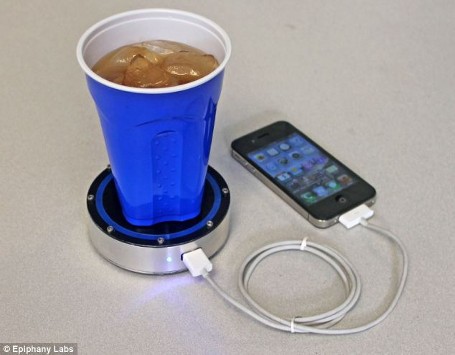 The Epiphany One Puck, tampak seperti tatakan gelas biasa. Tatakan gelas unik ini bisa mengisi ulang baterai HP dengan tenaga yang disalurkan minuman dingin atau panas di atasnya. Dalam satu tatakan gelas ini, terdapat dua sisi untuk dua macam minuman. Sisi merah untuk tempat minuman panas dan sisi biru untuk minuman dingin. Setelah itu tinggal menghubungkan alat dengan hanphone Anda menggunakan kabel USB.