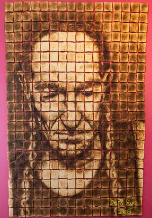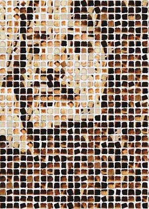 Para seniman memang tak pernah kehabisan akal. Mereka memanfaatkan roti yang disulap menjadi karya seni unik yang populer. Lihat saja, mozaik wajah tokoh dunia ini dihadirkan lewat susunan roti yang dipanggang dengan tingkat kematangan berbeda.