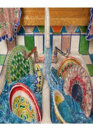 Butuh kesabaran dan ketelitian ekstra untuk membuat kreasi ini. Waktu dan tenaga yang dihabiskan akhirnya menghasilkan replika dapur berlapis jutaan manik-manik cantik. Yuk, intip bagaimana tampilannya!