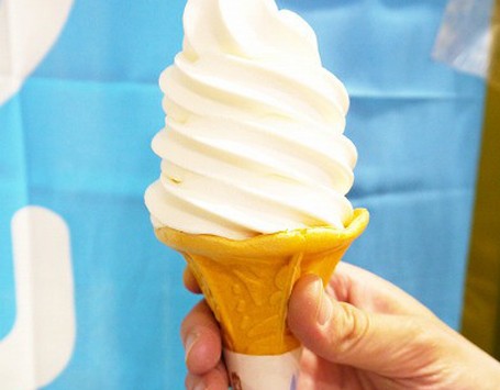 Secara khusus, reporter Rocket News 24 yaitu Usagi pergi ke Prefektur Aomori untuk menikmati es krim kerang yang banyak dibicarakan masyarakat Jepang. Dengan bendera biru bertuliskan Hotate Soft Krim, penjual es krim kerang mudah ditemui di antara berbagai toko souvenir yang terletak di gedung segitiga.