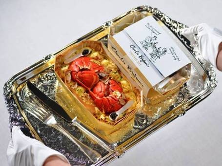 Makanan ini dibuat dengan paduan bahan premium yang terdiri dari champagne, lembar emas yang dapat dimakan, dan buntut lobster. Makanan yang diberi nama Swish Pie ini dibuat oleh sorang bernama Charlie Bigham.