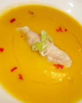 1. Hidangan: Sweet Potato Soup with Chicken Potsticker