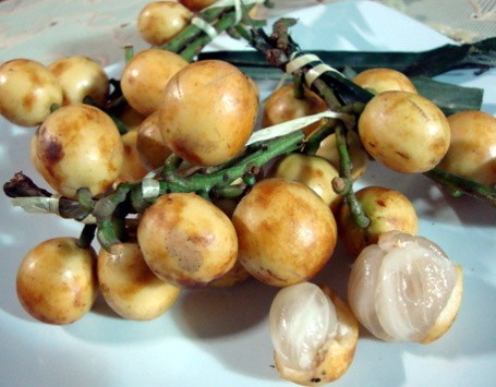 Sekilas, menteng (Baccaurea racemosa) seperti saudara kembar duku. Tampilan luar dan dalam serta rasanya mirip. Bentuknya bulat dengan diameter 2-2,4 cm. Namun, kulit buah menteng berwarna kuning atau hijau kecokelatan mengilat, bukan pucat tak mengilat seperti duku.