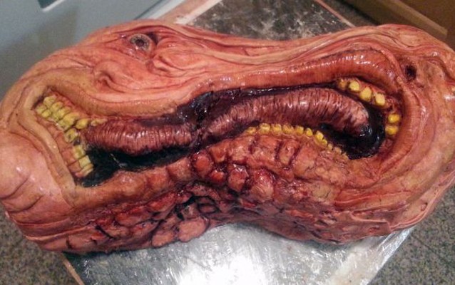 Istimewanya, kue yang dipersembahkan untuk ulang tahun sang pacar ini dibuat selama dua setengah hari. Tak ingin membuat kue biasa, Vicky Knoop memutuskan membuat kue bertema fiksi horor untuk ulang tahun sang pacar. Ia memilih karakter Split Face dari film The Thing yang menggambarkan dua wajah hancur dan rusak. Skenario film yang rilis tahun 1982 ini ditulis oleh John Carpenter.