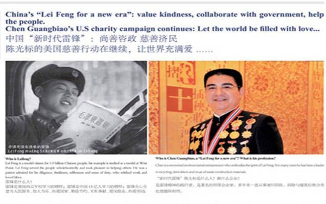 Pada hari Senin (16/07/2014), Chen mengiklankan acara amal makan siang setengah halaman di The Wall Street Journal dan satu halaman penuh di The New York Times. Dalam headline tertulis "China's 'Lei Feng for a new era.': Value kindness, collaborate with government,help the people.β