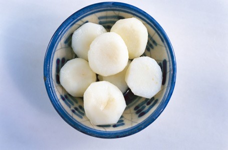 Rebus dalam air mendidih sampai terapung, lalu angkat dan tiriskan. Siram dengan air dingin dan tiriskan kembali.