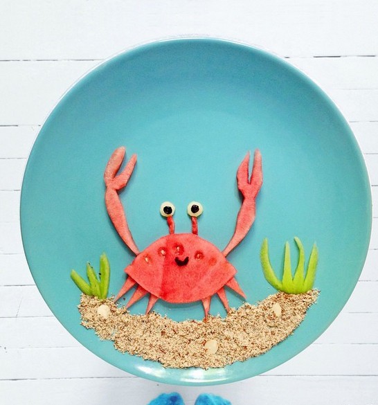 Dalam akun instagram Idafrosk, menampilkan kepiting yang sedang berada di laut. Dengan menggunakan piring berwarna biru sebagai latar laut, semangka digunakan dengan bentuk menyerupai kepiting lengkap dengan rumput yang dibuat dari melon. Sedangkan tepung almond yang digunakan untuk pasir pantainya.
