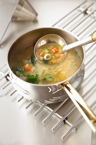 Tips: Sejak awal, tambahkan sayuran yang lama matangnya seperti wortel dan kentang. Beberapa menit sebelum sup selesai dimasak, baru masukkan sayuran mudah lunak seperti kacang polong atau jagung.