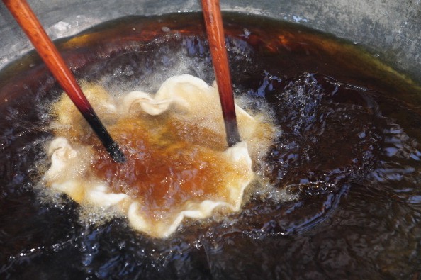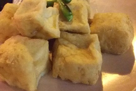 Lapisan tahu terdiri dari 100 gr tepung terigu, 2 sdm tepung beras, 1 sdt kaldu bubuk, 1/4 sdt merica bubuk, dan 1/2 sdt garam.