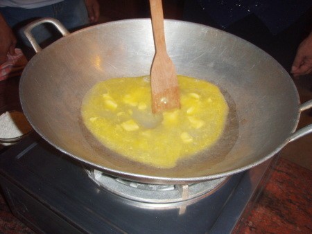 Isian vla terdiri dari 100 gr daging durian haluskan, 40 gr gula pasir, 350 ml susu cair, 1/4 sdt garam, 20 gr maizena larutkan dengan 3 sdm air, 1 kuning telur, dan 2 sdm mentega.