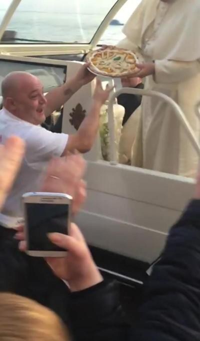 Pizza untuk Paus Francis ini terlihat spesial karena dilengkapi dengan tulisan: “Viva Il Papa” atau “Hidup Paus!”. Selain itu, pizza ini terbuat dari tomat ceri kuning dan mozzarella buffalo yang royal. Seloyang pizza ini diberikan Enzo saat Paus mengunjungi Naples, Italia pada Minggu yang lalu.
