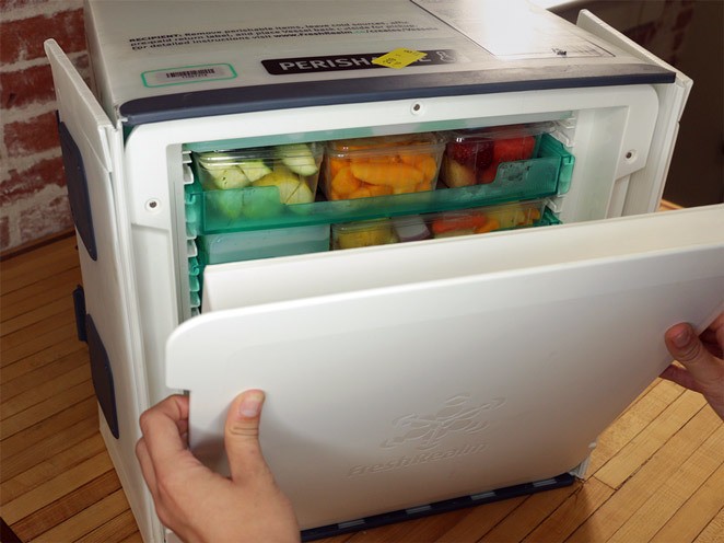 Seluruh kotak adalah perangkat lunak yang dapat digunakan kembali, FreshRealm akan mengambil kotak ke rumah pelanggan pada keesokan harinya. Sehingga dapat mengurangi limbah plastik atau kemasan.