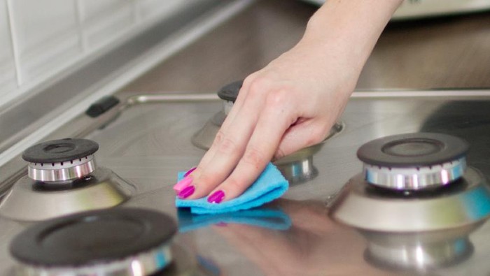 Jika memakai kompor gas dengan tungku sebaiknya cek kondisi tungkunya. Lempengan penutup tungku dan gerigi di tungku sering tertutup kotoran. Cuci dan sikat dengan sikat lembut dan bilas lalu keringkan. Jika tungku tersumbat nyala api akan merah dan tidak merata yang membuat masakan jadi lama matang. Kalau ingin praktis bisa memanggil tukang servis kompor sekaligus oven. Lap dan bersihkan kotoran badan kompor agar lebih bersih dan bebas noda minyak.
