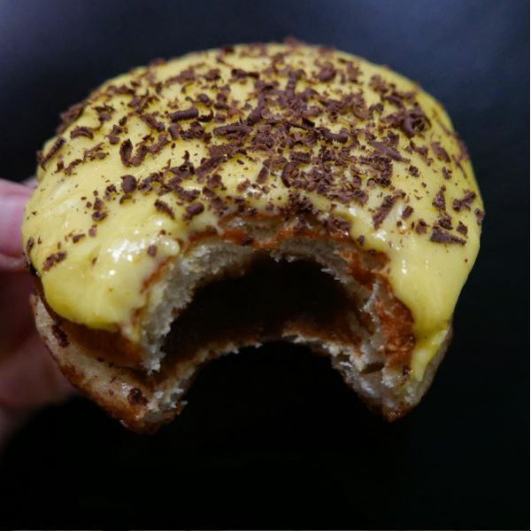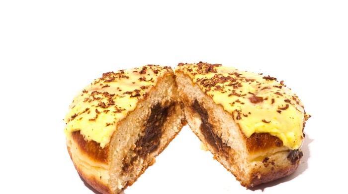 Donat buatan tangan ini lalu diberi isian krim cokelat bercampur sumsum tulang panggang. Kabarnya sumsum tulang membuat rasa krim lebih kaya sekaligus menghasilkan tekstur lembut enak.