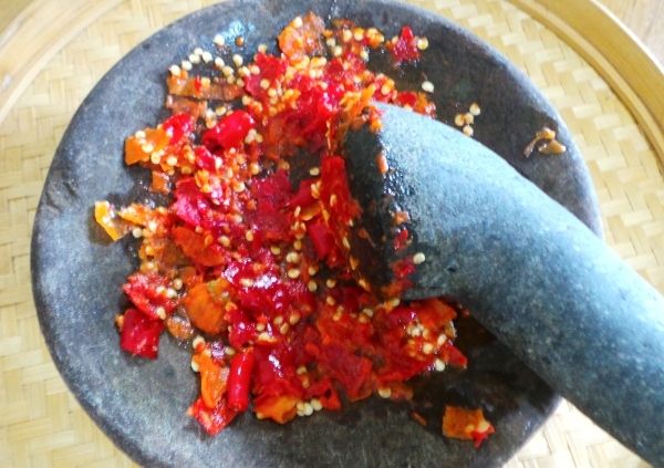 Ulek bumbu yang sudah digoreng. Tambahkan terasi dan garam. Terakhir, masukkan tempe goreng atau bakar. Memarkan sambil aduk dengan sambalnya hingga rata. Sajikan dengan kemangi. (msa/odi)