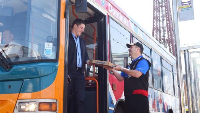 Mirror.co.uk (31/05) melaporkan Domino's melakukan percobaan layanan pengiriman di rute bus. Ini baru dilakukan di Blackpool, Inggris.
