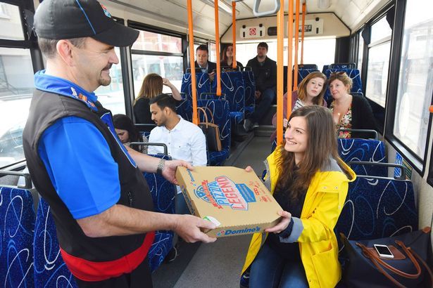 Mulai minggu ini, konsumen bisa memesan makanan melalui telepon saat berada di rute bus Catch 22 dari Mereside ke Cleveley di Blackpool. Pizza akan dikirimkan hangat ke pemberhentian bus pilihan.
