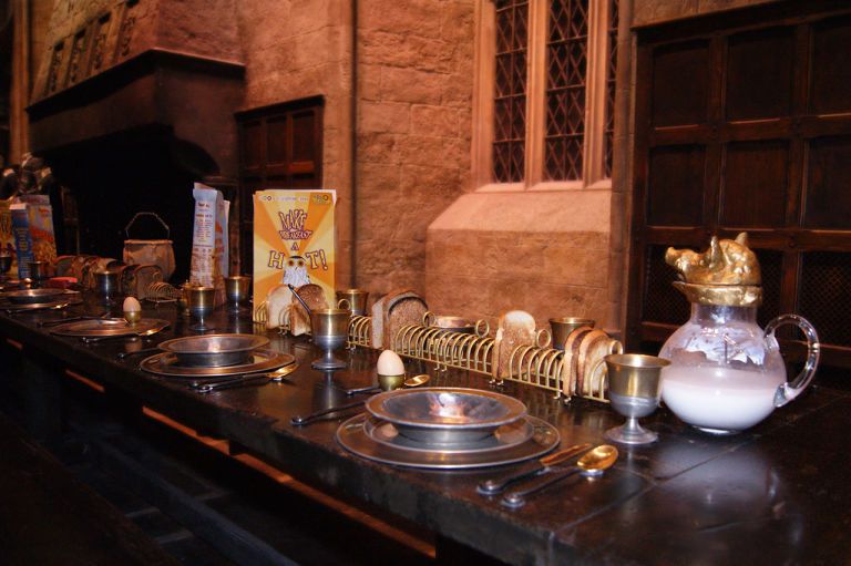Musim panas tahun ini, Warner Bros Studio Tour di London mengundang seluruh penggemar Harry Potter menikmati sarapan di kastil Hogwarts. Acara bernama 'Breakfast at Hogwarts' ini diikuti tur berkeliling set film Harry Potter yang menakjubkan. Diantaranya ruangan Gryffindor, kantor Dumbledore, dapur the Weasley di The Burrow, dan Platform 9 ž yang ikonik.