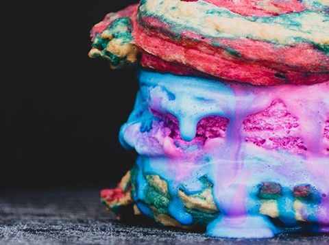 Baru-baru ini hadir kreasi makanan warna pelangi lainnya. The Naughty Churro, pop-up churro di Los Angeles, membuat sandwich es krim warna pelangi berbahan churro.