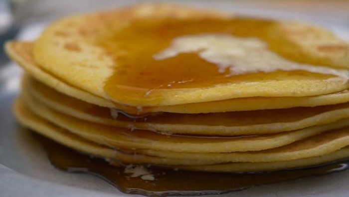 Karena gandum belum terlalu populer. Maka banyak dipakai cornmeal. Tentu saja, hasilnya akan lebih tipis, renyah dan tak seempuk pancake masa kini. Jika ingin mencoba sendiri, Anda bisa mengikuti reesep berikut ini.