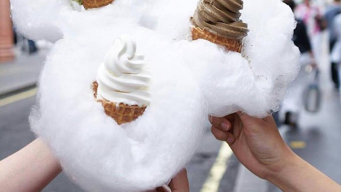 Tiap pilihan es krim juga dapat diberi kembang gula besar yang jadi daya tarik. Untuk kreasi tersebut, pembeli perlu menambah 1 Pound (Rp 17.000).