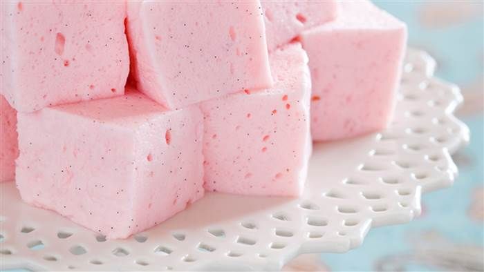 Untuk membuatnya, kocok putih telur sampai soft peak, lalu tambah gelatin dan perasa. Terakhir tambah sirup gula panas. Hasilnya berupa marshmallow lembut empuk yang berbeda dari kemasan.
