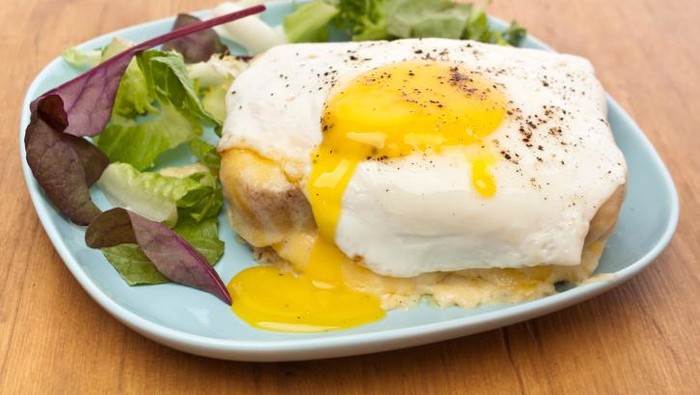 Makan malam tak melulu harus nasi atau mie. Bisa juga pilihan roti yang lebih ringan. Namun jika khawatir tak kenyang, Anda dapat pilih Croque Madame.