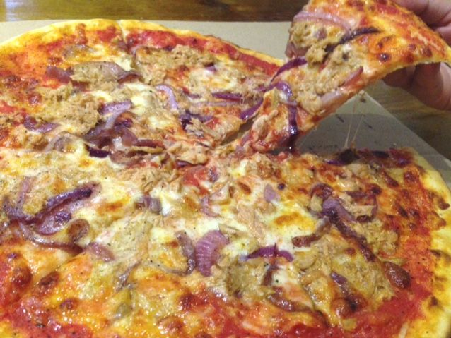 Dari namanya sudah ketahuan andalan restoran. Di sini ada beberapa pilihan pizza dalam ukuran kecil dan besar. Tuna Pizza termasuk pizza yang bisa dicicipi. Berisi topping tuna, paprika dan bawang bombay.