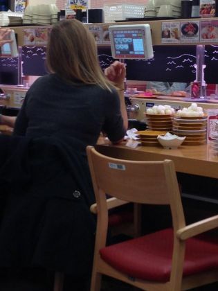 Mereka menjelaskan bahwa mereka sengaja tidak memakan nasi sushi yang mereka pesan, untuk menjaga berat badan.