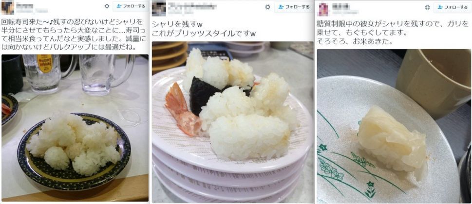 Tetap saja, hal itu tidak membuat wanita muda di Jepang berhenti membuang nasi saat makan sushi. Mereka menolak untuk makan nasi dan hanya memakan toppingnya. Berbagai alasan muncul, mulai dari program diet hingga nasi bisa menambah berat badan.