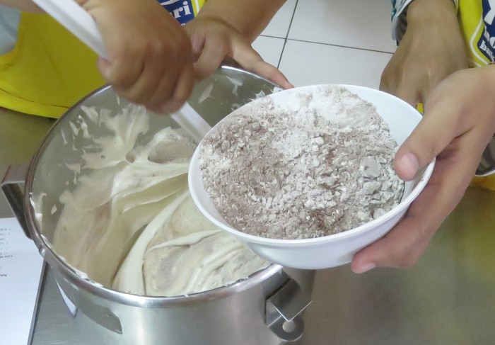 3. Mencampur adonan B dan A